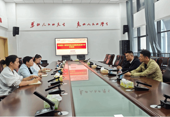 2025年9月26日,为深化校际合作、共建优秀实习基地,南雅梅溪湖中学黄伟峰副校长、吴超主任一行到访我校体育学院,与体育学院邹华秀书记、郭宇副院长、单思文主任等开展座谈交流。双方围绕实习生培养、体育学科建设及校运会合作等议题进行了深入探讨,并达成多项共识。