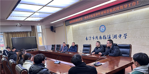学院党委书记罗祥云一行赴长郡梅溪湖中学检查督导学生实习,协同基地学校领导老师一起观摩实习生的示范汇报课,看望慰问实习学生的工作生活情况,并组织座谈会了解同学们的实习成果、指导下一步实习任务。罗祥云书记对我院实习学生的优异表现给予充分肯定,对长郡梅溪湖中学领导老师对实习生的指导关怀表示感谢,并与基地学校领导商谈了进一步合作事项。