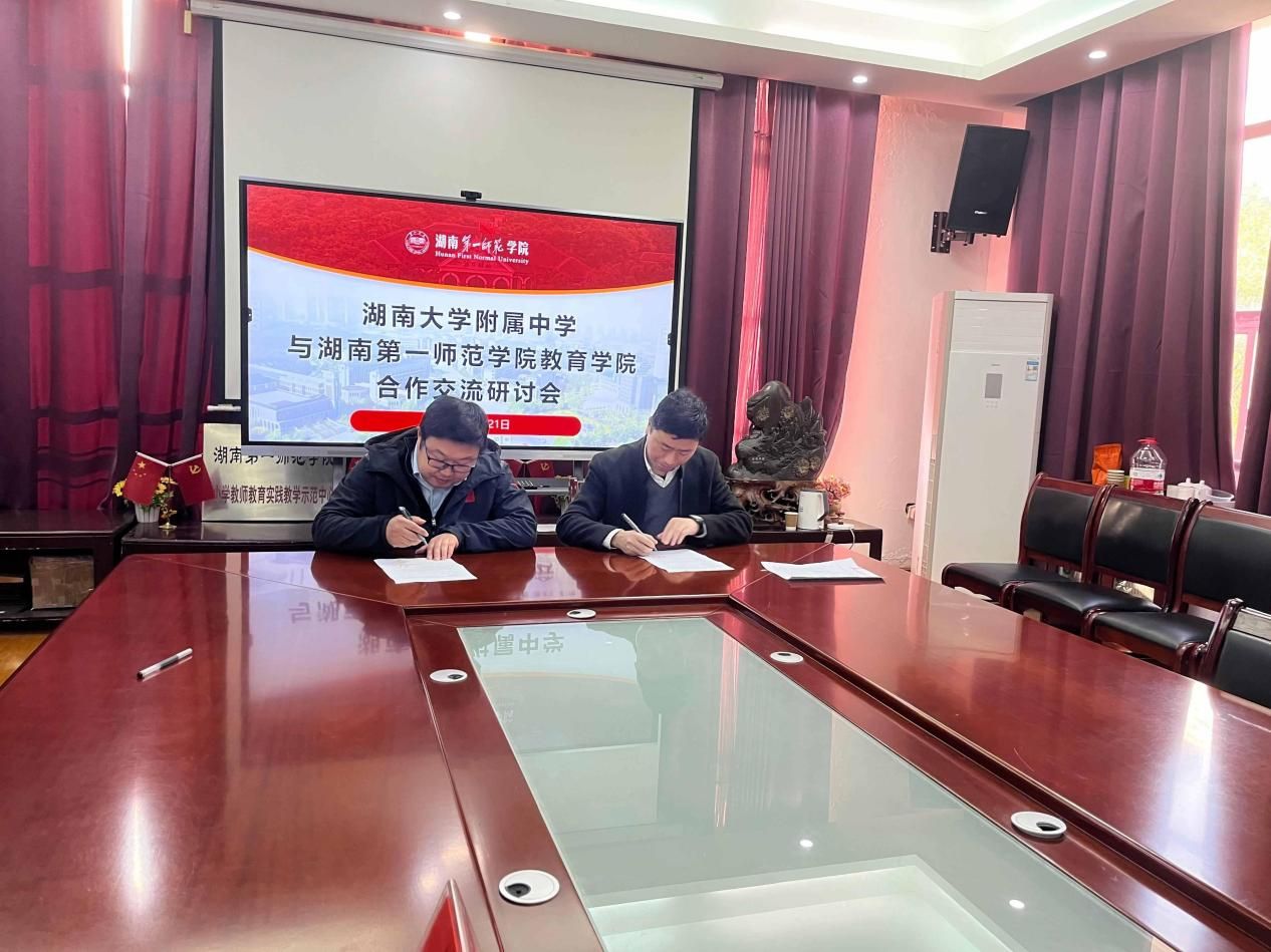 签约仪式上,双方领导就合作愿景展开交流。邹立军副院长回顾了学院在师范生培养、专业建设及社会服务方面的显著成果,强调实习基地建设对提升学生实践能力、促进教育创新的重要性。湖南大学附属中学、怀化市郡永实验学校负责人介绍了学校特色及教学需求,期待通过合作实现师资共建、课题研究等领域的突破。
